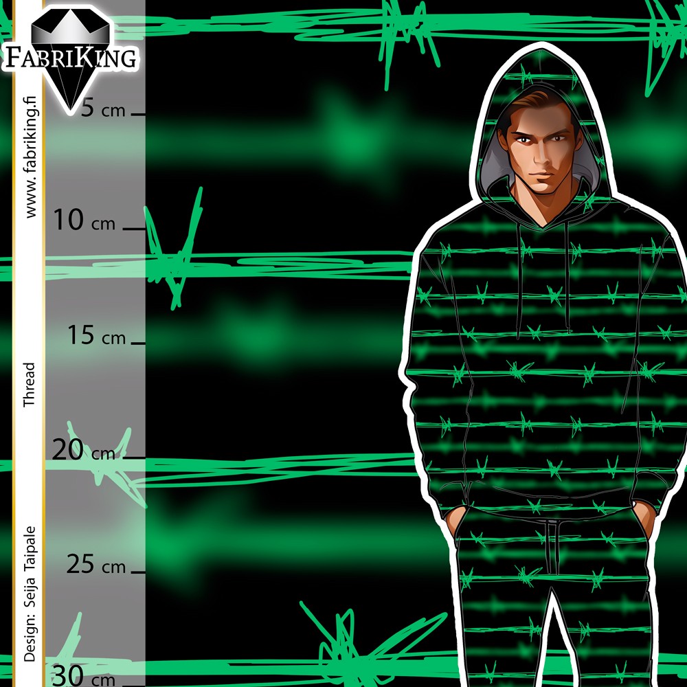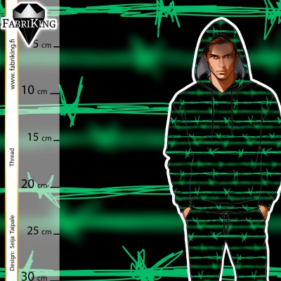 Napakka joustocollege, joka sopii hyvin vaateompeluun.